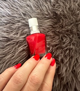 Essie Gel Couture Nail Polish and Top Coat Duo This is just one of the many color options they have in their Gel Couture line. It’s a pretty red shade with slight blue undertones and is labeled to have “gel-like wearability”. It didn’t last as long as a gel manicure would on my nails, but it lasted longer than “normal’ nail polish would.